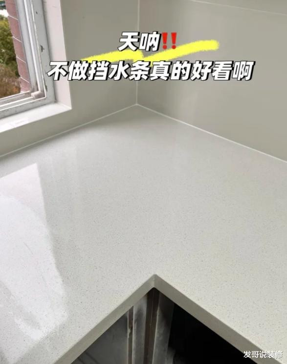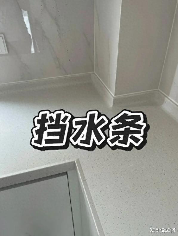 安装厨房台面,师傅会默认安装挡水条,这样前期量尺会更方便、更快安装,也简单,即使切割有大小头,也能把它遮住。