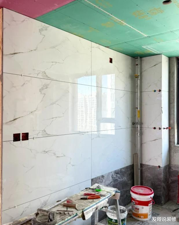这样一来,满墙除了阴角和阳角有接缝外,露出来的全部是整砖。后期等装修全部结束,无论是整体效果,还是打理卫生,都近乎于完美。